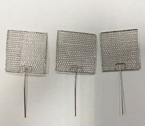 ?高純度99.999%鉑Pt制作,鉑網由鉑絲編織成網,精密加工技術可使網絲均勻分布,且網格大小一致,織網絲徑一般0.12mm、0.15mm、0.18mm、0.20mm,鉑網常規寬度50mm,52目,絲線徑0.12mm,也可根據客戶您的需求定制特殊鉑絲規格和鉑網規格,邊框殼使用鉑絲點焊接固定,非常耐用。